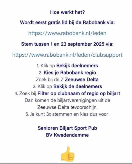Voor het volledige programma kunt u terecht in onze agenda hieronder of via Biljartpoint (selecteer locatie Kwadendamme – Café René).